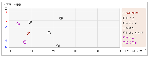 | S&T모티브 | 0.8% | -7.4% | -9.2 |
