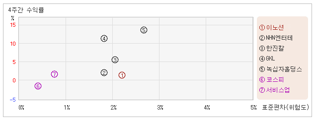 관련종목들 가운데 변동폭 커도 수익율은 낮아