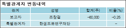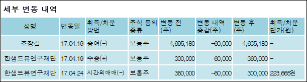 다음은 한샘의 지분 변동 내역과 보유 내역이다.
