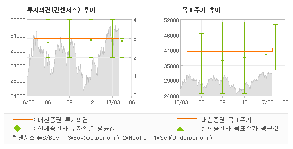 | 의견제시일자 | 투자의견 | 목표가격 | | 20170425 | 매수(신규) | 41,000 | | 20161027 | 매수(유지) | 40,000 | | 20160502 | 매수(유지) | 40,000 |