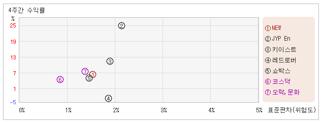 | JYP Ent. | 2.1% | 25.1% | 11.9 |