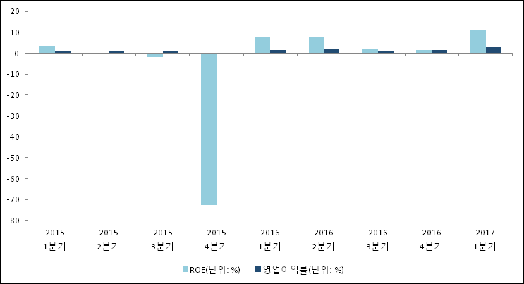 이번분기 기준으로 추정되는 LG상사의 자기자본이익률(ROE)은 11.1%로 나타났다. 전년 동기인 2016년 1분기 ROE는 7.8%로 이번 분기에 3.3%p 상승했다. 한편 동종목의영업이익률은 2.7%이다. 지난해 동기 영업이익률은 1.5%로 이번 1분기가 1.2%p 상승했다.