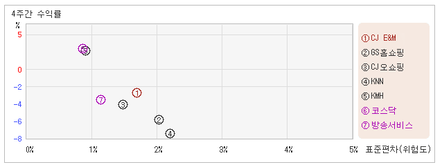 | CJ오쇼핑 | 1.4% | -5.2% | -3.7 |