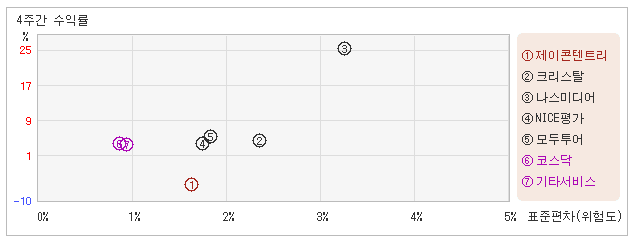 | 제이콘텐트리 | 1.6% | -6.9% | -4.3 |