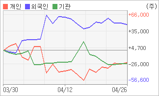 | 기관과 개인은 순매도, 외국인은 순매수(한달누적) 전일 외국인이 2,866주를 순매도했다. 4주간을 기준으로 보면 외국인이 매수 우위를 유지하면서 47,875주를 순매수한 반면, 기관은 매도 관점으로 접근하면서 24,682주를 순매도했고, 개인들도 초반에 동종목을 순매도한 이후에 근래에는 순매도량을 줄이면서 23,193주를 순매도한 것으로 집계됐다. |