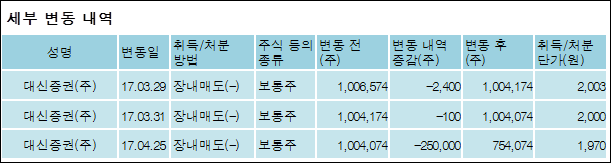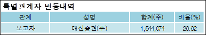 다음은 대신밸런스제4호스팩의 지분 변동 내역과 보유 내역이다.