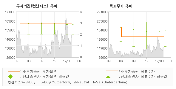 | 의견제시일자 | 투자의견 | 목표가격 | | 20170427 | 매수(유지) | 170,000 | | 20170331 | 매수(유지) | 170,000 | | 20170126 | 매수(유지) | 170,000 | | 20170111 | 매수(유지) | 170,000 | | 20161027 | 매수(유지) | 170,000 |