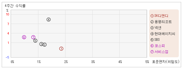 | SK디앤디 | 현대에이치씨엔 | 용평리조트 | 넥센 | SBS | |