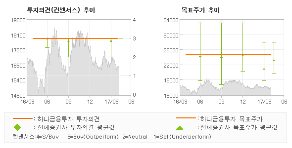 | 의견제시일자 | 증권사 | 투자의견 | 목표가 | | 20170428 | 하나금융투자 | 매수 | 25,000 | | 20170428 | 신한금융투자 | 매수(유지) | 23,000 | | 20170428 | HMC투자증권 | 매수 | 24,000 | | 20170428 | 대신증권 | 매수(유지) | 28,000 |