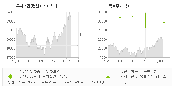 | 의견제시일자 | 투자의견 | 목표가격 | | 20170428 | 매수(유지) | 32,500 | | 20170307 | 매수(유지) | 32,500 | | 20170202 | 매수(유지) | 32,500 | | 20170109 | 매수(유지) | 32,500 | | 20170105 | 매수(유지) | 32,500 |