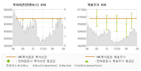 | 의견제시일자 | 투자의견 | 목표가격 | | 20170929 | 매수 | 600,000 | | 20170726 | 매수 | 600,000 | | 20170712 | 매수 | 600,000 | | 20170426 | 매수 | 600,000 | | 20170331 | 매수 | 600,000 |