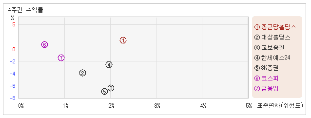 | 교보증권 | 2.0% | -8.0% | -4.0 |