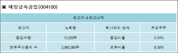 다음은 태양금속공업의 지분 변동 내역과 보유 내역이다.