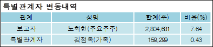 최대주주와 특수관계자의 지분 변동은 주가에 영향을 주는 요인이다. 특히 보유비율을 지속적으로 늘리거나 줄일 경우, 해당종목 투자시 유의할 필요가 있다.