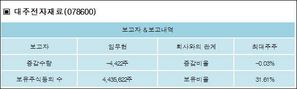 다음은 대주전자재료의 지분 변동 내역과 보유 내역이다.