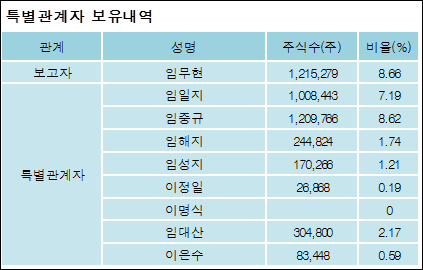 최대주주와 특수관계자의 지분 변동은 주가에 영향을 주는 요인이다. 특히 보유비율을 지속적으로 늘리거나 줄일 경우, 해당종목 투자시 유의할 필요가 있다.