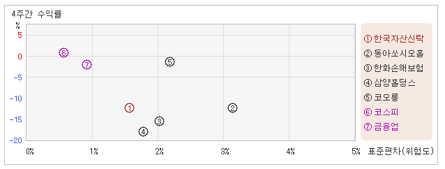 | 한화손해보험 | 2.0% | -15.7% | -7.8 |