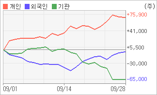| 외국인과 기관은 순매도, 개인은 순매수(한달누적) 기관이 5일연속 주식을 팔고 있는 반면 외국인은 3일연속 주식을 사고 있다. 4주간을 기준으로 보면 외국인이 매도 후 매수의 관점을 보이고 있음에도 불구하고 4,909주를 순매도했고, 기관도 매도 관점으로 접근하면서 64,905주를 순매도했지만, 개인은 오히려 순매수량을 늘리며 69,814주를 순매수했다. |