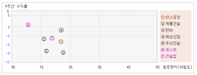 | 계룡건설 | 1.1% | -5.2% | -4.6 |