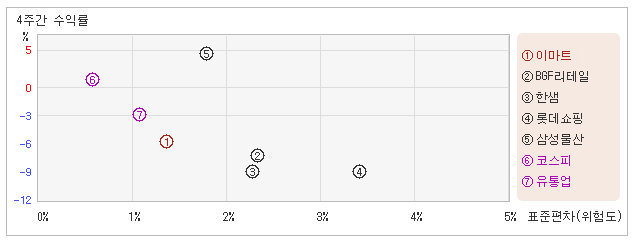 | 이마트 | 1.3% | -7.4% | -5.6 |