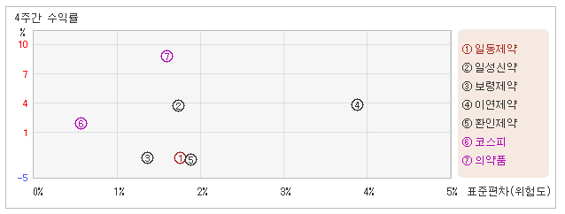 | 일동제약 | 1.7% | -3.0% | -1.7 |