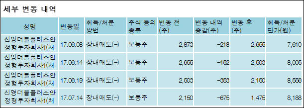다음은 태영건설의 지분 변동 내역과 보유 내역이다.