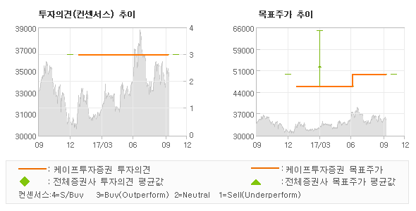 | 의견제시일자 | 증권사 | 투자의견 | 목표가 | | 20171013 | 케이프투자증권 | 매수(유지) | 50,000 | | 20170907 | 하나금융투자 | 매수 | 50,000 |