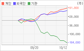| 외국인/개인 순매수, 기관은 순매도(한달누적) 9월27일부터 전일까지 기관이 6거래일 연속 동종목을 내다 팔았다. 4주간을 기준으로 보면 외국인이 초반에 동종목을 순매수한 이후에 기세를 이어가며 71,797주를 순매수했고, 개인들도 순매수량을 늘리며 91,772주를 순매수했다. 하지만 기관은 매도 관점으로 접근하면서 163,569주를 순매도했다. |