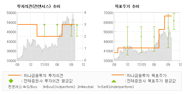 | 의견제시일자 | 투자의견 | 목표가격 | | 20171030 | 매수 | 69,000 | | 20171010 | 매수 | 69,000 | | 20170905 | 매수 | 69,000 | | 20170731 | BUY(상향) | 58,000 | | 20170725 | NEUTRAL | 43,000 |