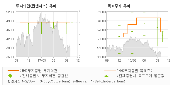 | 의견제시일자 | 증권사 | 투자의견 | 목표가 | | 20171030 | HMC투자증권 | 매수 | 55,000 | | 20171030 | NH투자증권 | 매수 | 51,000 | | 20171030 | KTB투자증권 | 매수 | 49,000 | | 20171030 | 유진투자증권 | 매수(유지) | 55,500 |