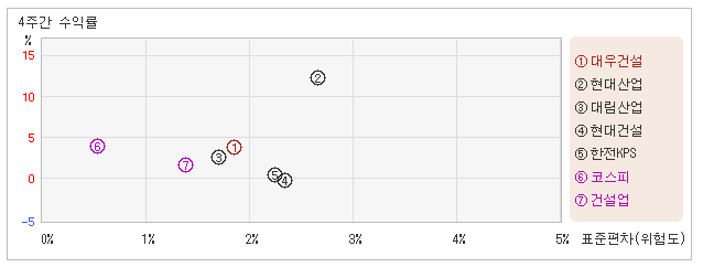 | 현대건설 | 2.3% | -0.4% | -0.1 |