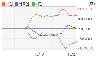 | 외국인/개인 순매수, 기관은 순매도(한달누적) 기관이 3일연속 순매수를 보이고 있는 반면에 외국인은 2일연속 순매도를 보이고 있다. 4주간을 기준으로 보면 외국인이 매매관점을 매도에서 매수로 전환하면서 26,020주를 순매수했고, 개인들도 순매수량을 늘리며 930,180주를 순매수했다. 하지만 기관은 매도 관점으로 접근하면서 956,200주를 순매도했다. |