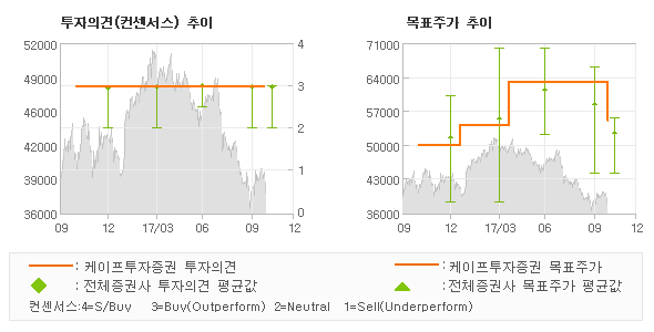 | 의견제시일자 | 투자의견 | 목표가격 | | 20171030 | 매수(유지) | 55,000 | | 20170728 | 매수(유지) | 63,000 | | 20170608 | 매수(유지) | 63,000 | | 20170417 | 매수 | 63,000 | | 20170131 | 매수(유지) | 54,000 |