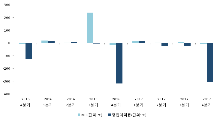 이번분기 기준으로 추정되는 성보화학의 자기자본이익률(ROE)은 -5.3%로 나타났다. 전년 동기인 2016년 4분기 ROE는 -19%로 이번 분기에 13.7%p 상승했다. 한편 동종목의영업이익률은 -303.8%이다.최근 일년을 살펴보았을 때 영업이익률이 급락했다. 지난해 동기 영업이익률은 -318.4%로 이번 4분기에 -14.6%p 하락했다.