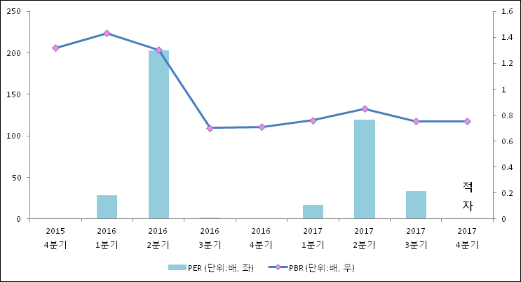 주가가 1주당 순자산의 몇배인지 알려주는 주가순자산비율인 PBR은 0.75배이다. 지난해 동기 PBR은 0.71배로 이번 분기와 비슷한 수치이다.
