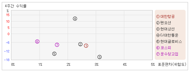 | 현대상선 | 3.1% | -18.7% | -6.0 |