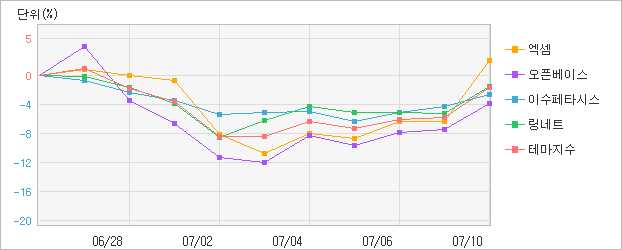| 일자 | 이수페타시스 | 링네트 | 오픈베이스 | 엑셈 | 테마지수 |