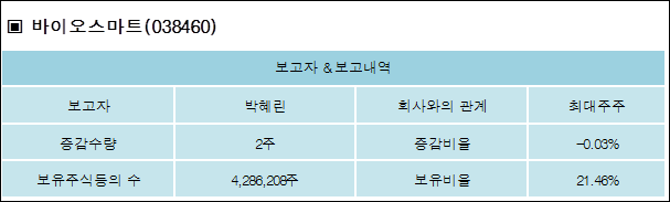 다음은 바이오스마트의 지분 변동 내역과 보유 내역이다.