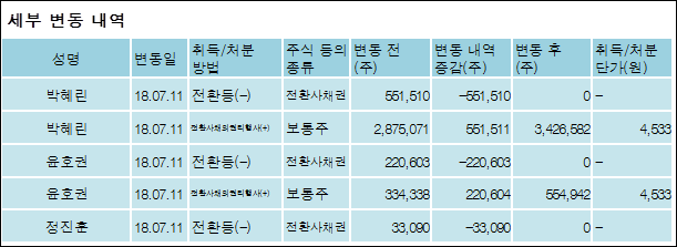 바이오스마트(038460)는 18일 최대주주 박혜린을 비롯한 특별관계자의 보유주식이 감소되었다고 발표했다. 이는 직전 보고일보다 2주 증가하여 지분율은 21.46%로 상승했다. 이번 보고 사유는 보고자본인과특별관계자의CB전환청구로 알려졌다.