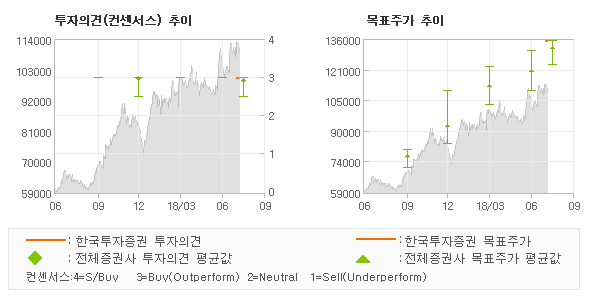| 의견제시일자 | 증권사 | 투자의견 | 목표가 | | 20180731 | 한국투자증권 | 매수(유지) | 135,000 | | 20180730 | 미래에셋대우 | TRADING BUY | 130,000 | | 20180730 | 유진투자증권 | BUY(유지) | 130,000 | | 20180626 | NH투자증권 | BUY(유지) | 130,000 |