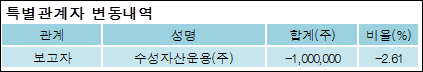 최대주주와 특수관계자의 지분 변동은 주가에 영향을 주는 요인이다. 특히 보유비율을 지속적으로 늘리거나 줄일 경우, 해당종목 투자시 유의할 필요가 있다.