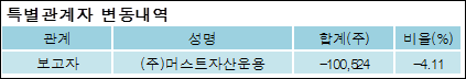 최대주주와 특수관계자의 지분 변동은 주가에 영향을 주는 요인이다. 특히 보유비율을 지속적으로 늘리거나 줄일 경우, 해당종목 투자시 유의할 필요가 있다.