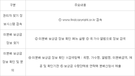 하지만 앞으로는 권리자가 별도 회원가입 없이도 미분배 보상금 목록과 금액을 손쉽게 조회한다. 음실련, 음산협 홈페이지를 각각 방문해 곡을 찾아 금액을 확인하는 수고를 덜 수 있다.