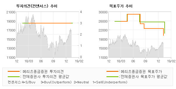 | 의견제시일자 | 증권사 | 투자의견 | 목표가 | | 20190207 | 메리츠종금증권 | BUY | 20,000 | | 20190115 | KTB투자증권 | BUY | 22,000 |