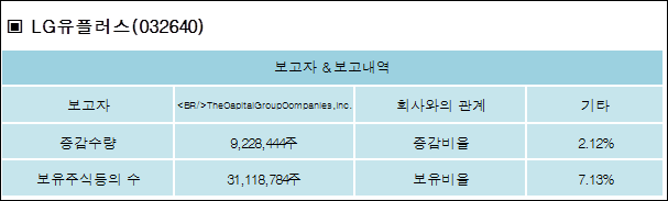 다음은 LG유플러스의 지분 변동 내역과 보유 내역이다.
