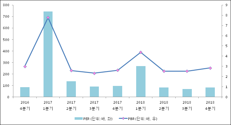 주가가 1주당 수익의 몇배가 되는지 나타내는 주가수익비율(PER)은 83.6배로 나타났다. 전년 동기 PER은 97.46배로 이번 분기에 하락했다.주가가 1주당 순자산의 몇배인지 알려주는 주가순자산비율인 PBR은 2.85배이다. 지난해 동기 PBR은 2.62배로 이번 분기와 비슷한 수치이다.