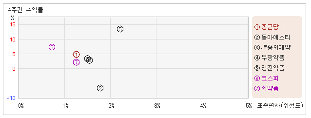 | 종근당 | 1.2% | 4.9% | 4.0 |