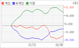 | 외국인과 개인은 순매도, 기관은 순매수(한달누적) 기관이 3일연속 주식을 팔고 있는 반면 외국인은 5일연속 주식을 사고 있다. 4주간을 기준으로 보면 기관이 초반에 동종목을 순매수한 이후에 최근에는 순매수량이 줄어들고 있음에도 불구하고 24,131주를 순매수한 반면, 외국인은 매도 후 매수의 관점을 보이고 있음에도 불구하고 5,682주를 순매도했고, 개인들도 매도쪽으로 방향을 잡으면서 18,449주를 순매도했다. |
