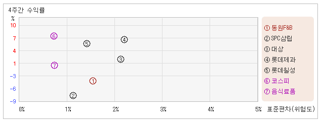 | 동원F&B | 대상 | SPC삼립 | 롯데칠성 | 롯데제과 | |