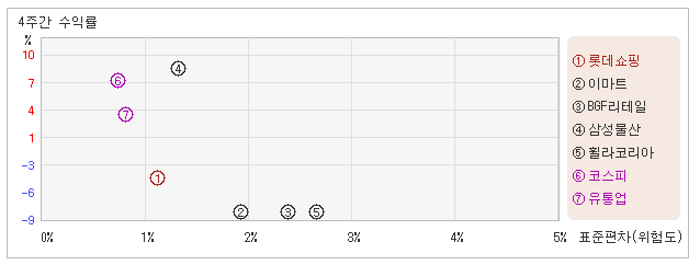 | 롯데쇼핑 | 1.1% | -5.0% | -4.5 |